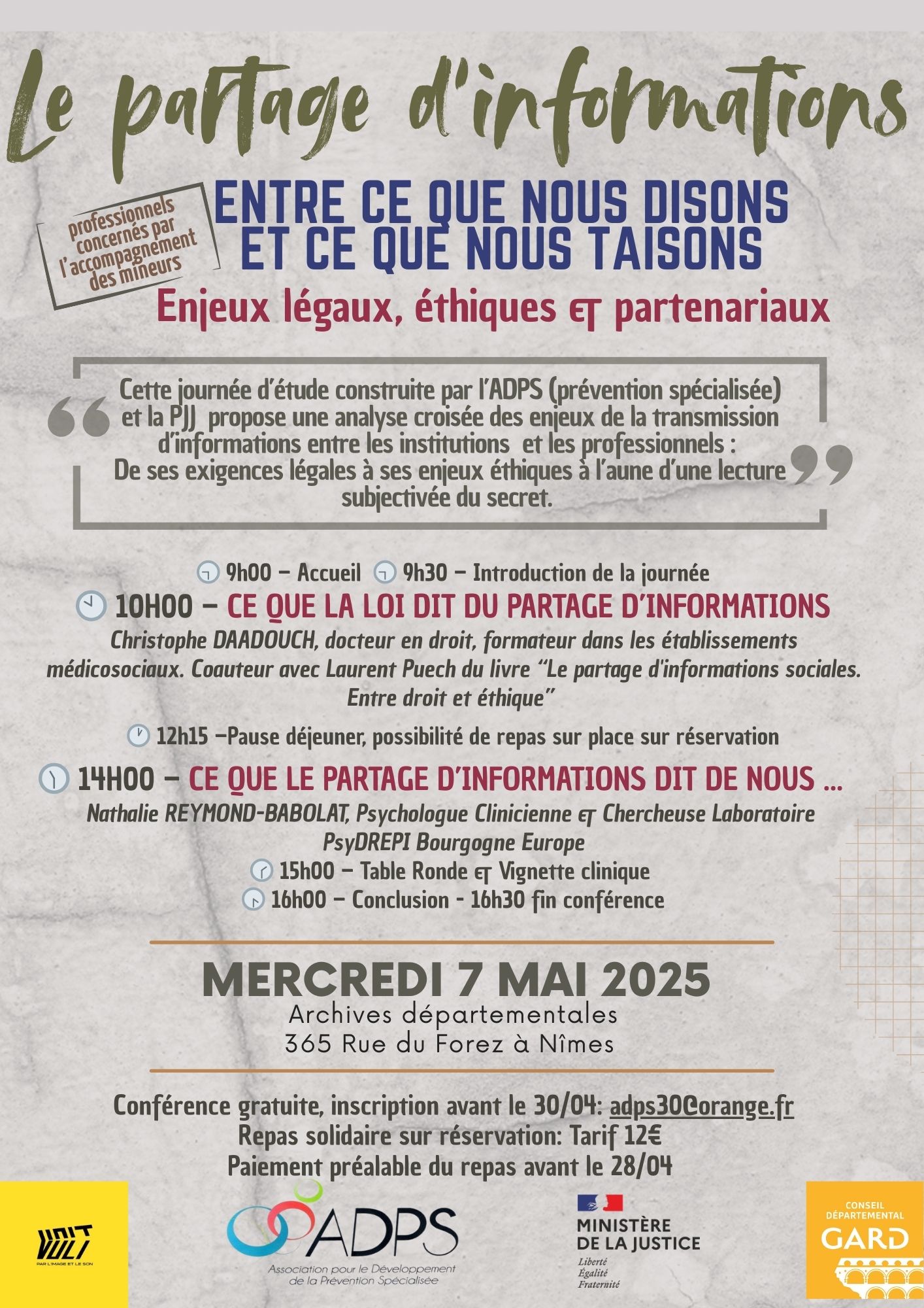 L’ADPS 30 et la PJJ Gard-Lozère ont réuni plus de 100 professionnel·les pour échanger sur le secret professionnel et le partage d’informations dans l’accompagnement des jeunes, grâce aux interventions claires et expertes de Christophe Daadouch et Nathalie Reymond-Babolat. Une journée riche en débats, portée par le respect, la solidarité et la dignité, qui donne déjà envie de recommencer.