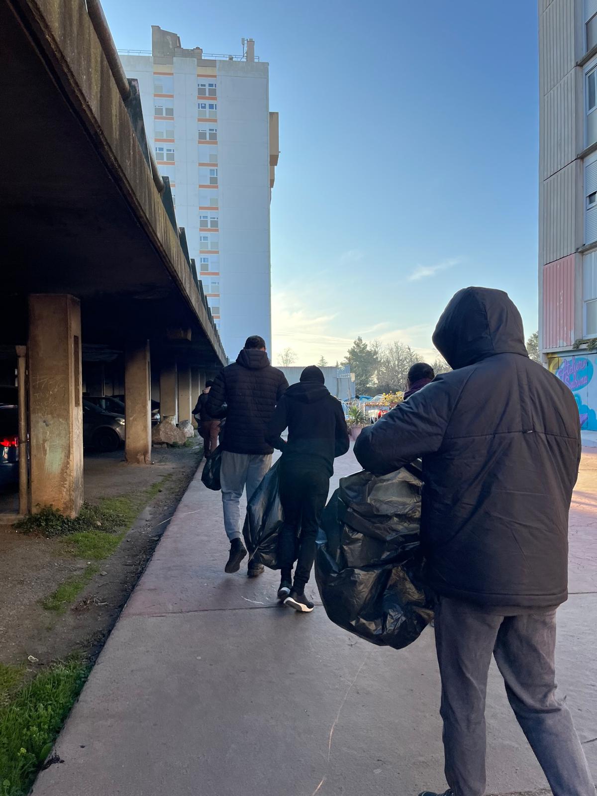 L’ADPS et des jeunes volontaires ont mené un chantier éducatif à Pissevin et Valdegour, équipés de gants et sacs poubelle pour nettoyer les rues et repérer les dépôts sauvages.