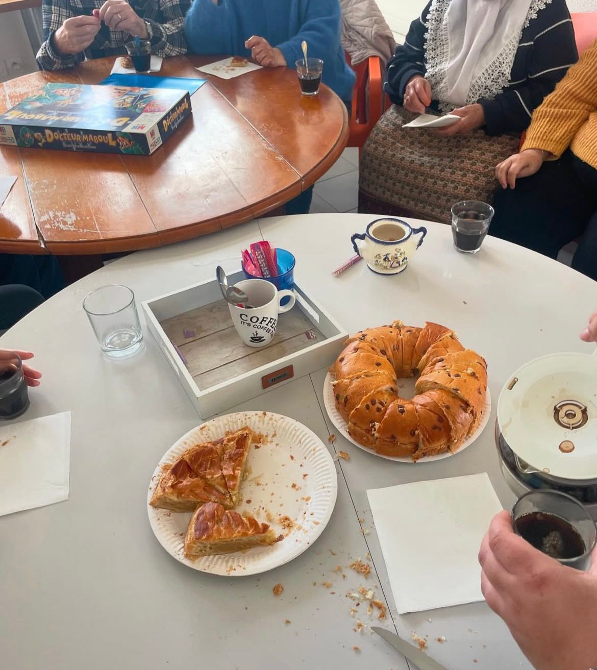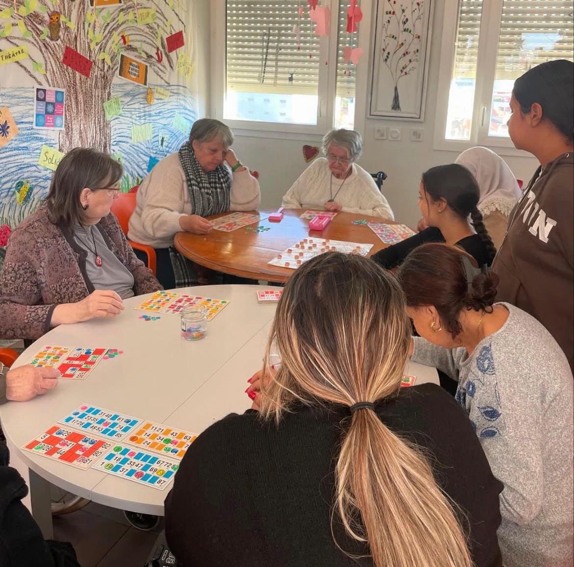 Avec un groupe de jeunes, nous avons l’habitude de donner rendez-vous aux résidents de cette maison de santé. Toujours de bons moments de partage, et parfois des parties de loto intenses comme celle-ci.