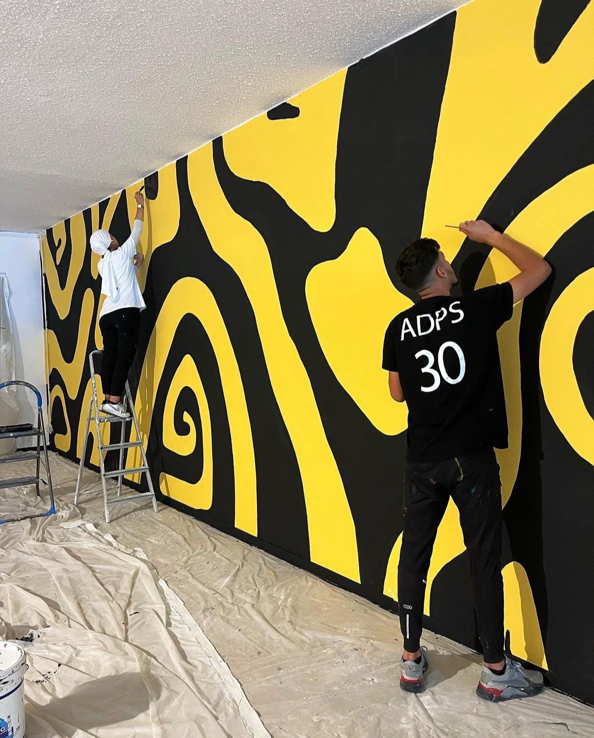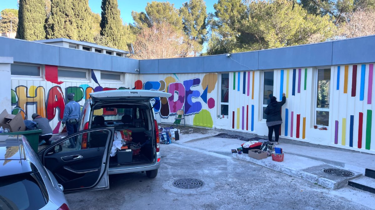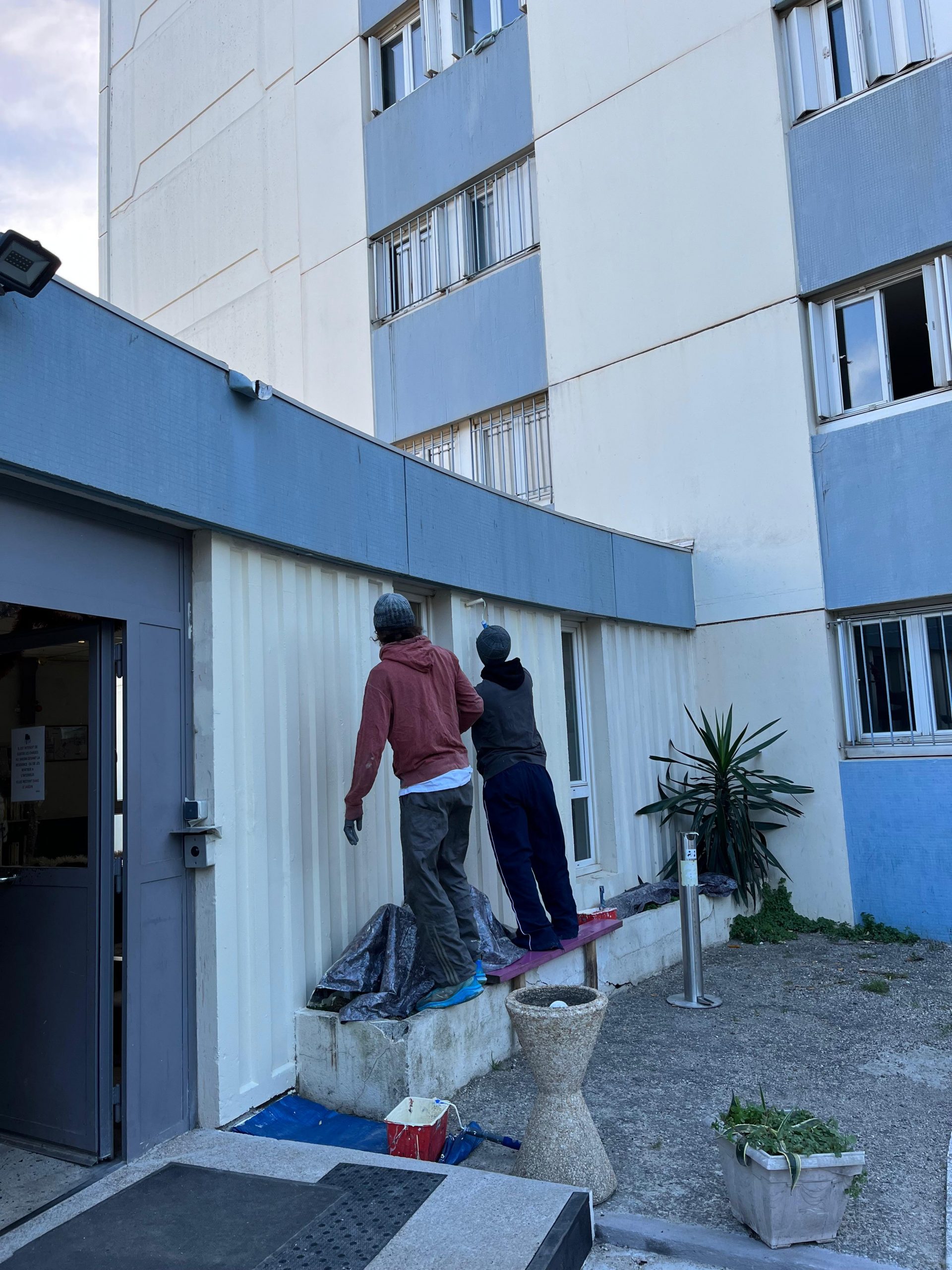 Nos jeunes se sont investis dans la rénovation en couleur de la devanture de la résidence Charles-Gide.